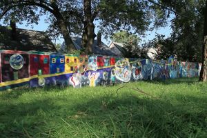 Разрисованная стена в Детройте, построенная для отделения чернокожего сообщества от белого района