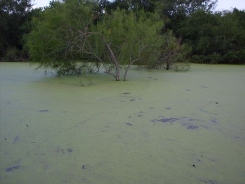 Вода здесь покрыта ряской и поначалу может показаться неприятной. Плавающая на поверхности густая крошечная растительность придаёт водоёму ярко-зелёный оттенок. Всё озеро выглядит как гороховый суп-пюре. Ряска совершенно безвредна, но её обилие в этой местности, безусловно, необычно. Не каждый день можно встретить воду, которая выглядит густой и зелёной.