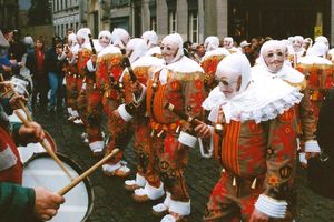 В бельгийском городке на этом древнем аналоге Масленицы надевают жутковатые восковые маски, шляпы со страусиными перьями и берут в руки палки для защиты от зла