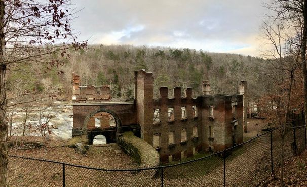В пышной зелени парка Свитуотер-Крик в Джорджии скрыты руины Производственной компании Нью-Манчестер, сгоревшей ещё во время Гражданской войны в США.