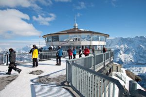Станция канатной дороги, превратившаяся во вращающийся панорамный ресторан на вершине горы Шилтхорн