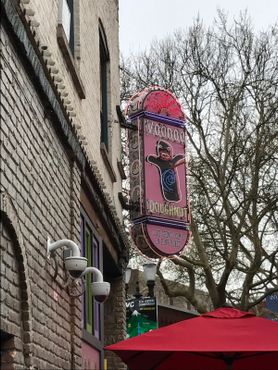 Крошечная витрина в Старом городе украшена бархатными картинами и газетными вырезками с изображением звёзд и общественных деятелей, а интерьер освещают люстры-канделябры. В городе, полном всяких странностей, именно пончики отличают «Вуду Донат» от остальных пончиковых мира. Среди самых популярных вкусов — «Старый грязный ублюдок» (пончик в шоколадной глазури с кусочками печенья «Орео» и арахисовой пастой), «Кленовый батончик с беконом» (пончик в виде батончика с кленовым сиропом и кусочками бекона) и «Кукла Вуду» (пончик в форме человечка в шоколадной глазури, проткнутого соломкой, из ранки которого сочится малиновая начинка).