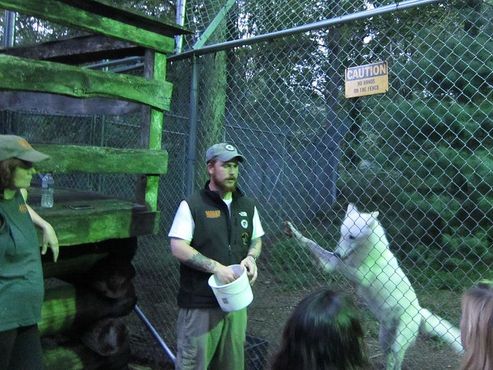 Популяции рыжих и мексиканских серых волков центра содержатся в густых лесных зонах и отдалённых вольерах с минимальным контактом с людьми, что обеспечивает животным больше шансов на успешный выход в дикую природу. В образовательных целях Центр защиты волков содержит также трёх волков-амбассадоров, которые попали в центр ещё щенками и чувствуют себя достаточно комфортно среди людей. Зефир и Алава — молодые, энергичные брат и сестра, за которыми очень интересно наблюдать, но своей настоящей гордостью и отрадой центр называет Атку, красивого 11-летнего арктического волка, который с ранних лет путешествует по северо-востоку страны. Атка выступает с просветительскими программами в музеях, школах и на различных мероприятиях и стал знаменитостью в природоохранных кругах.